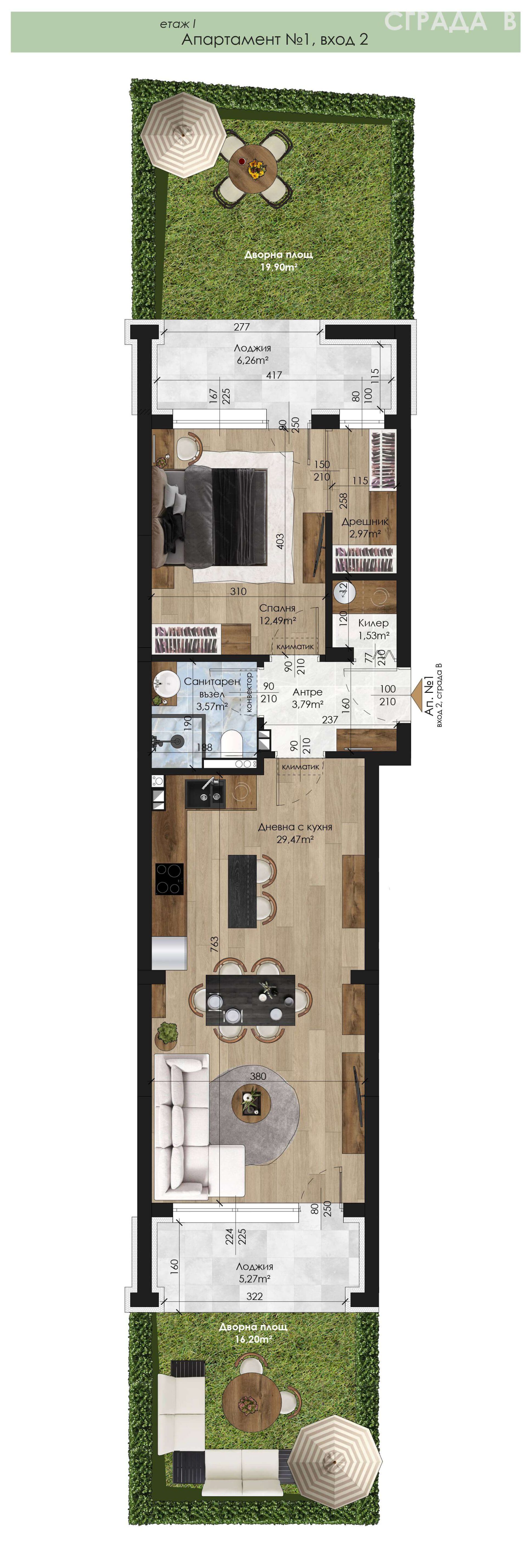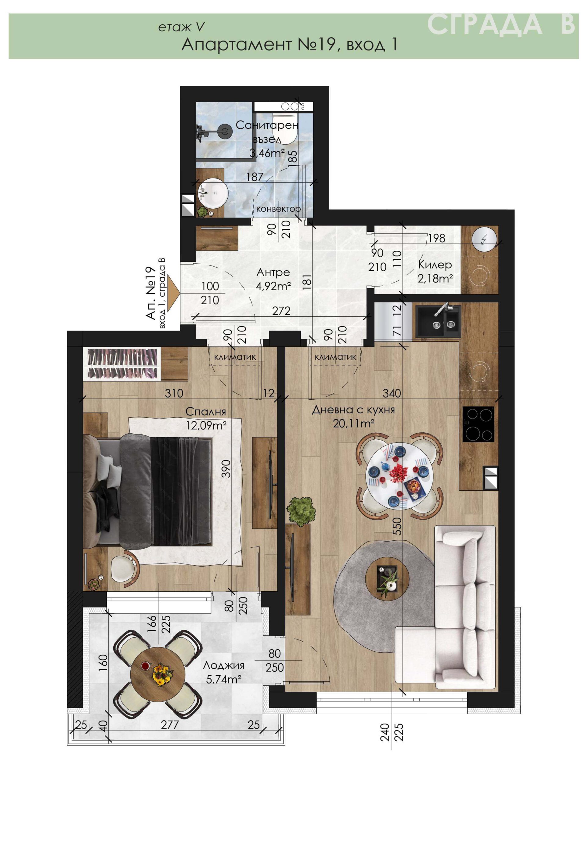 1-19 - Апартамент - Двустаен