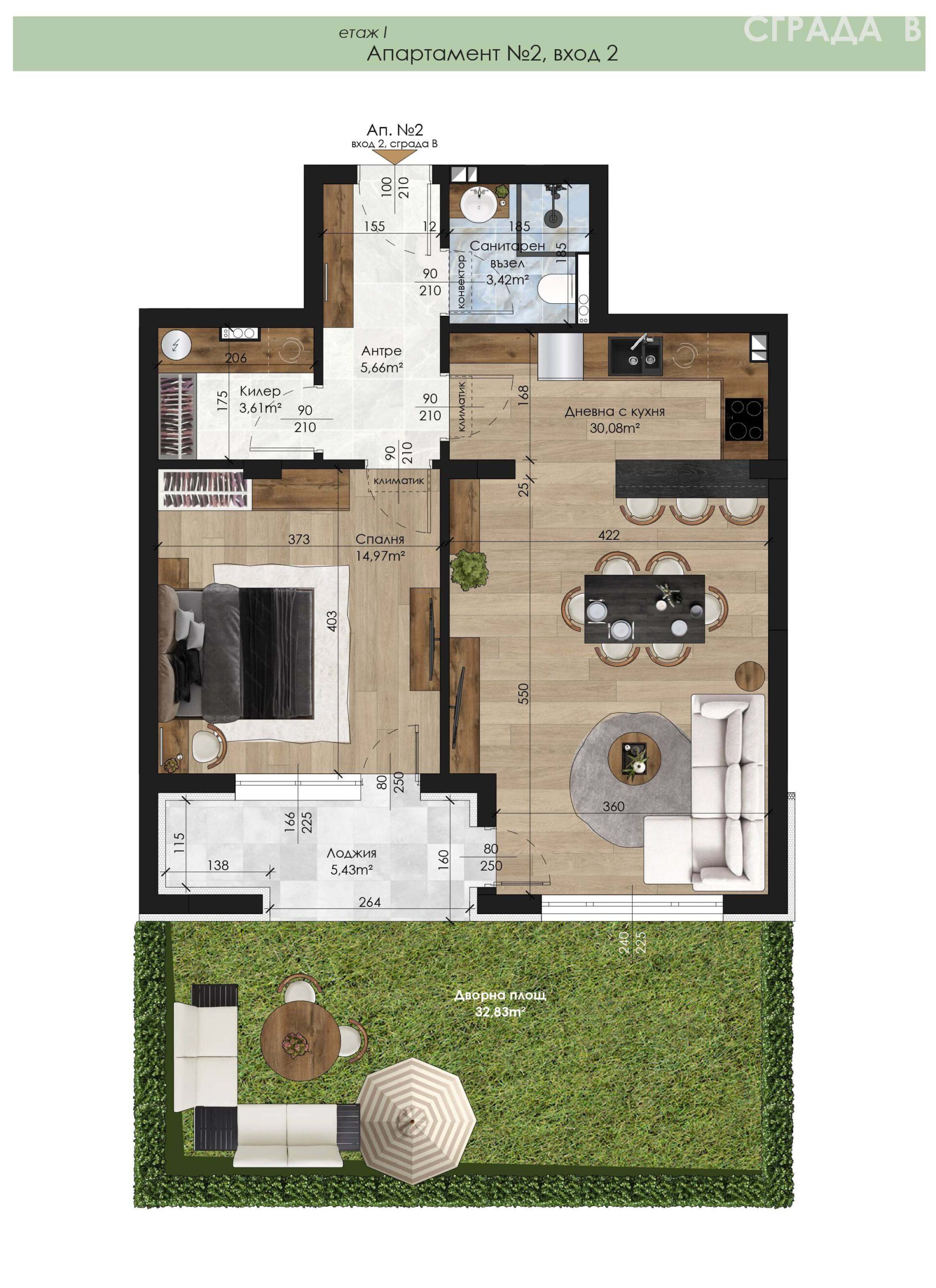 1-15 - Апартамент - Двустаен