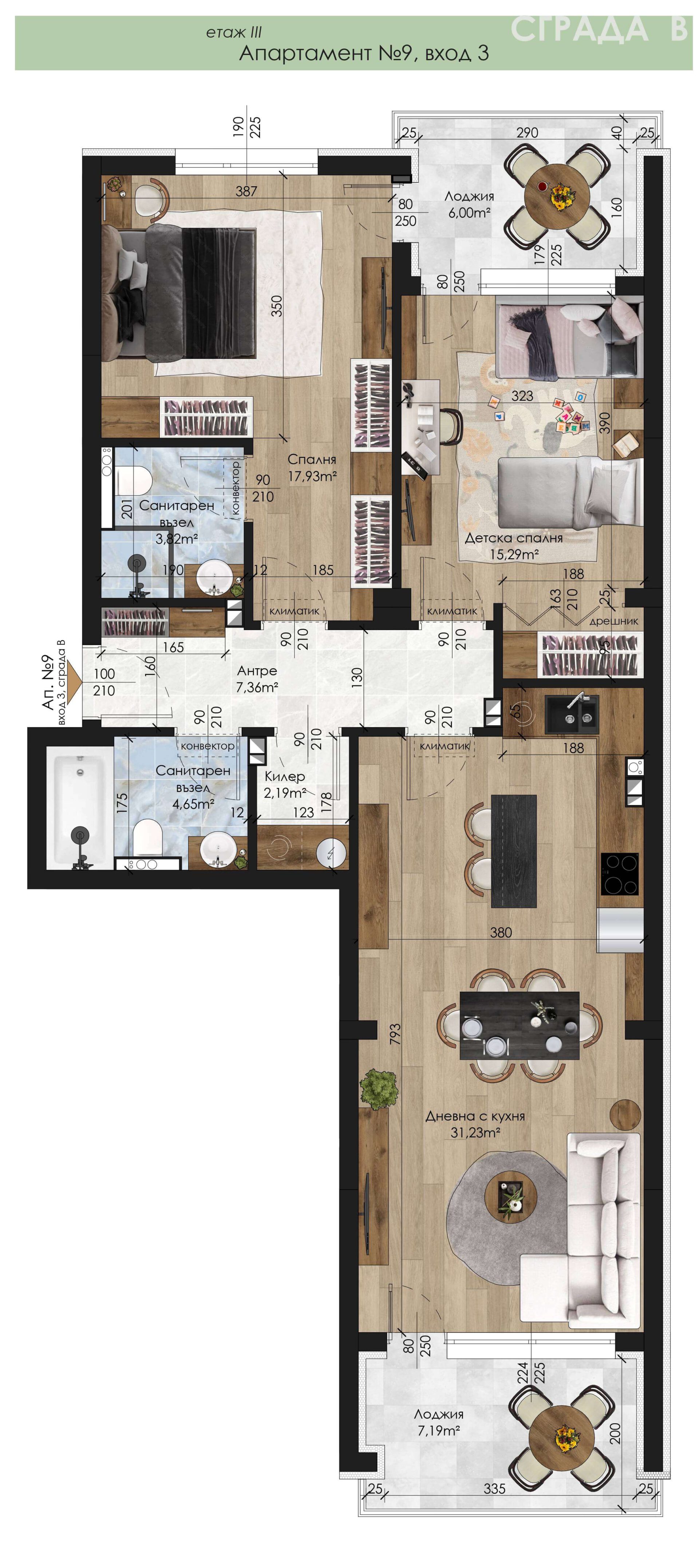 3-7 - Апартамент - Тристаен