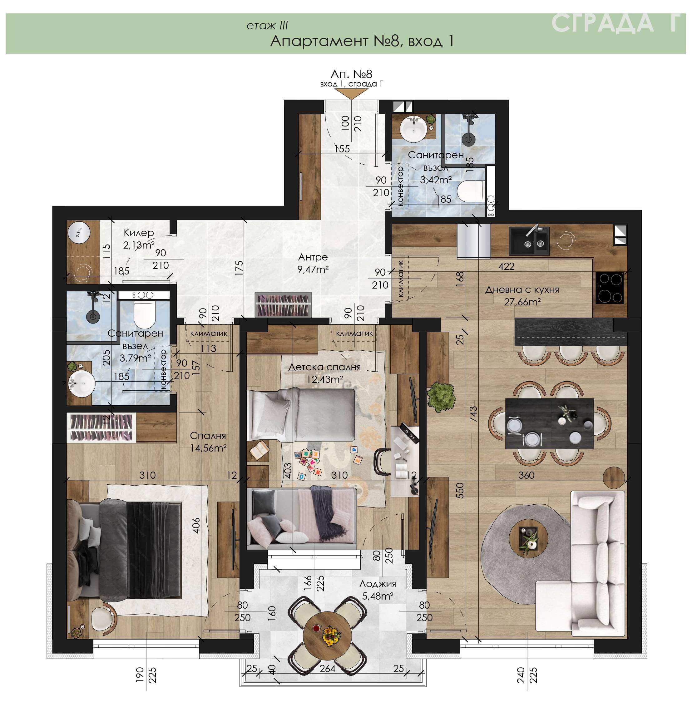 1-8 - Апартамент - Тристаен